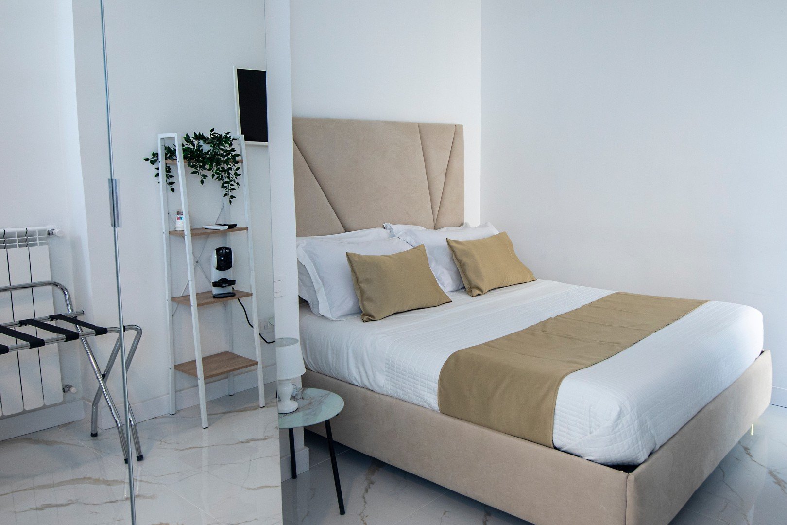 Nuestra Habitación Doble Deluxe, de 16 m², ofrece una estancia elegante y confortable en Sorrento, perfecta para parejas o viajeros que buscan comodidad. La habitación cuenta con una cama doble, un balcón privado con vista a la ciudad o al patio, y una completa gama de comodidades para garantizar una estancia relajante.